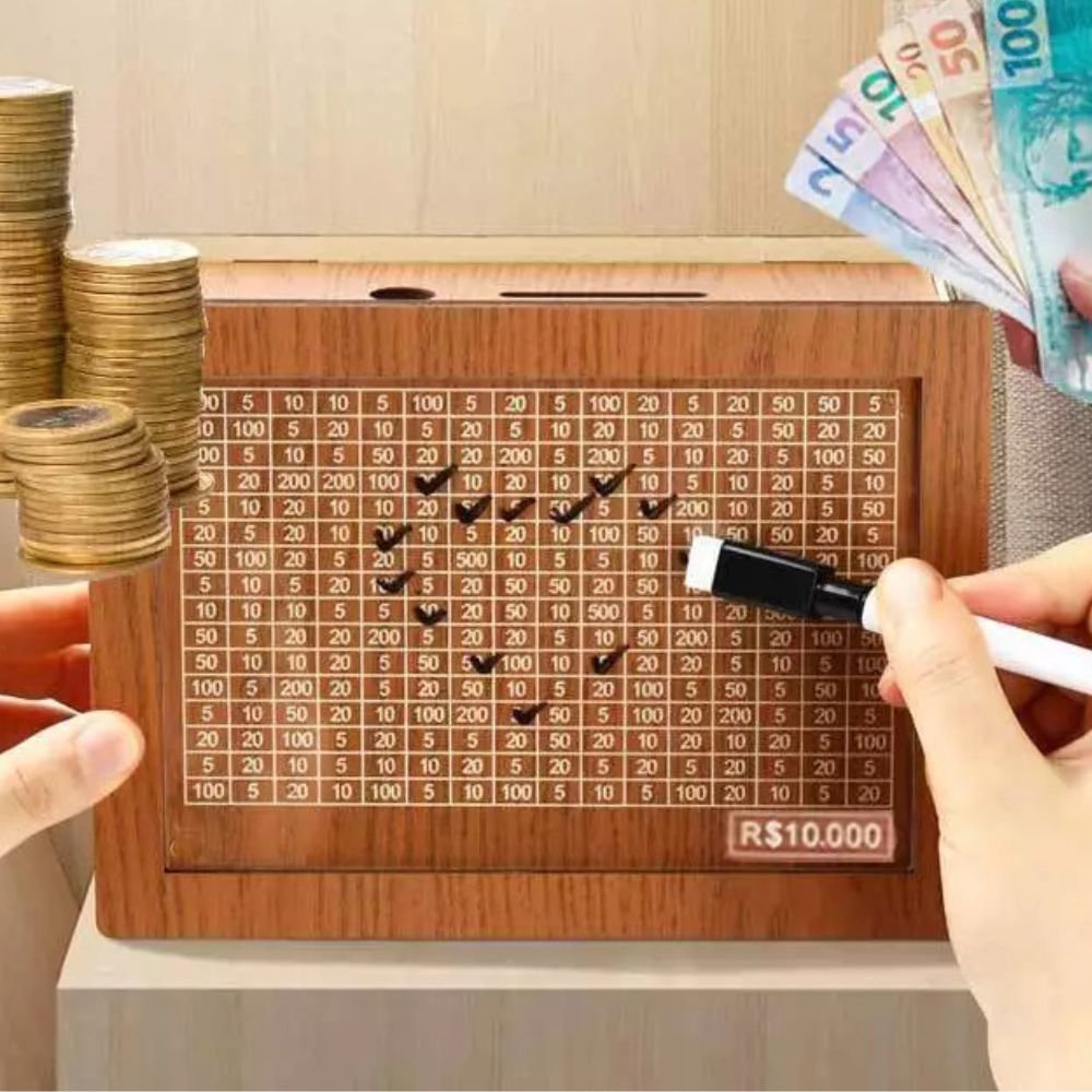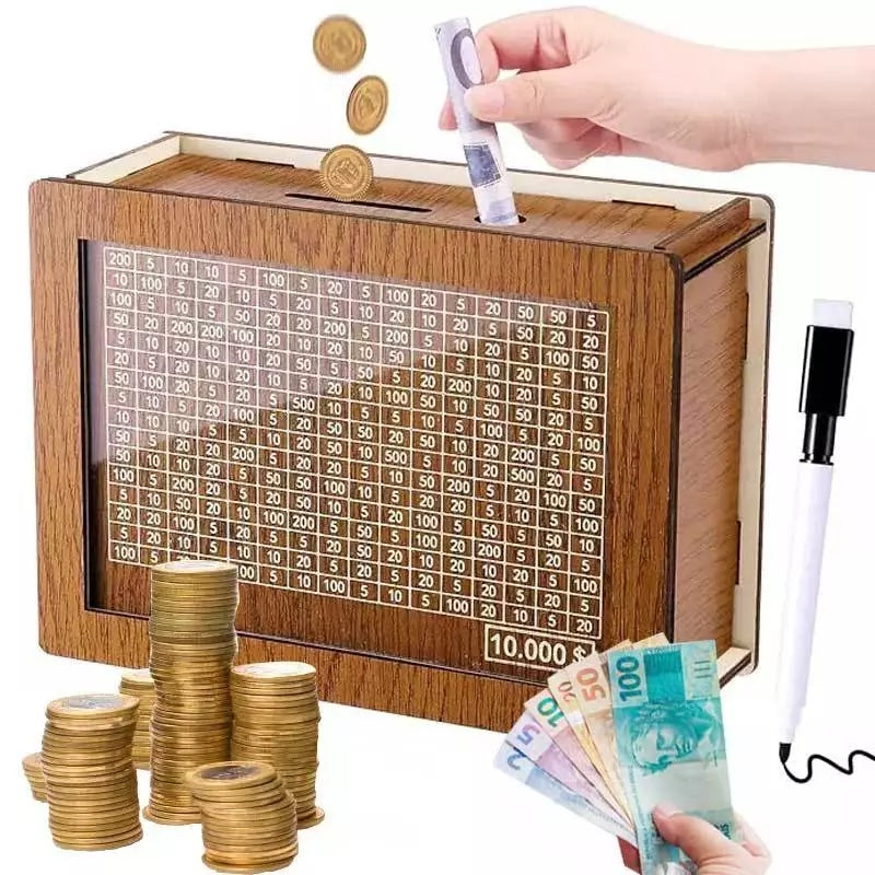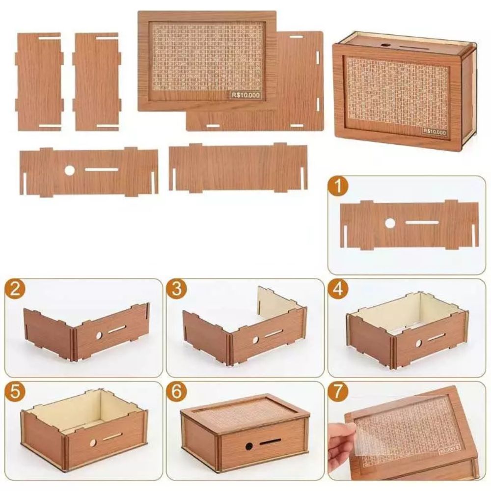 - 1x Cofre Caixa Desafio 10mil de Madeira Método Japonês