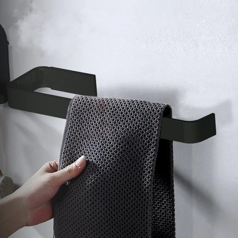 Com acabamento preto fosco, o Kit Acessórios de Banheiro em Alumínio cria uma atmosfera de tranquilidade, requinte e leveza perfeita para transformar o seu banheiro num espaço moderno e acolhedor.